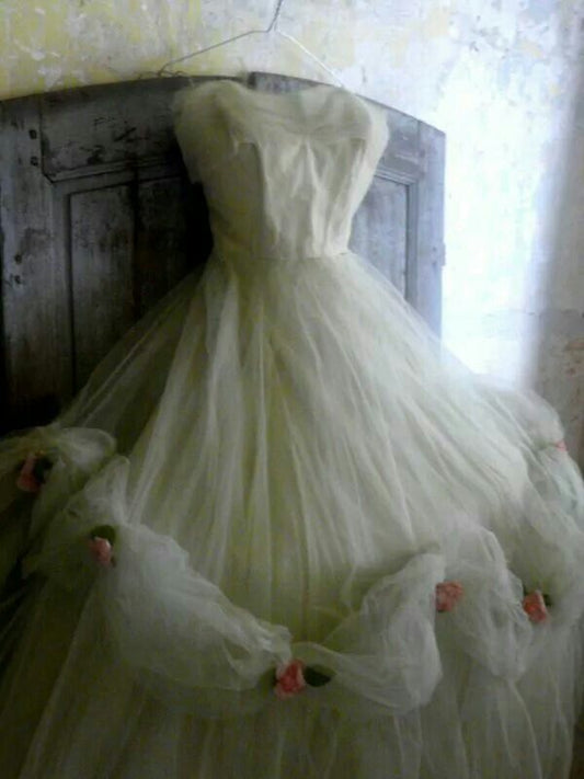 Green Vintage Floral Strapless Long Elegant Tulle Ball Gown Evening Dress Party Dress nv3320