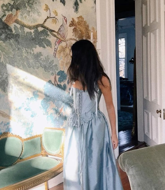 Matcha Green Fashion Retro Cute Strapless Long Ball Gown Evening Dress nv3328