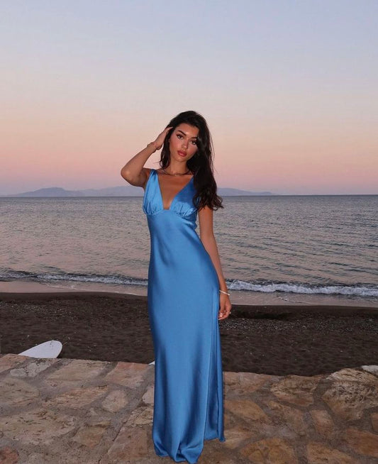 Blue suspender tassel maxi dress long evening dress party dress nv2691