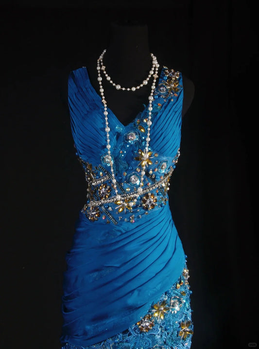 A gorgeous, sparkling, elegant blue mermaid long sequined prom dress for an evening gown nv5224