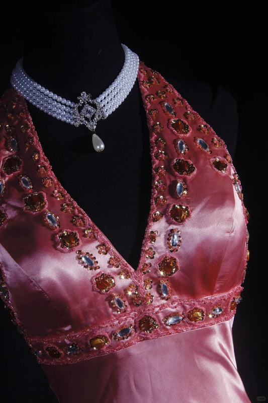 Pink exquisite beaded retro fashion long satin prom dress party dress nv5210