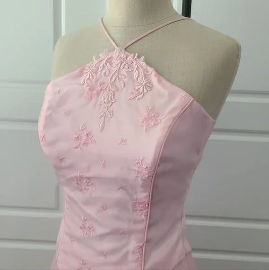 Pink Fashion Embroidered Strap Long Satin Prom Dress Evening Dress Party Dress nv3639