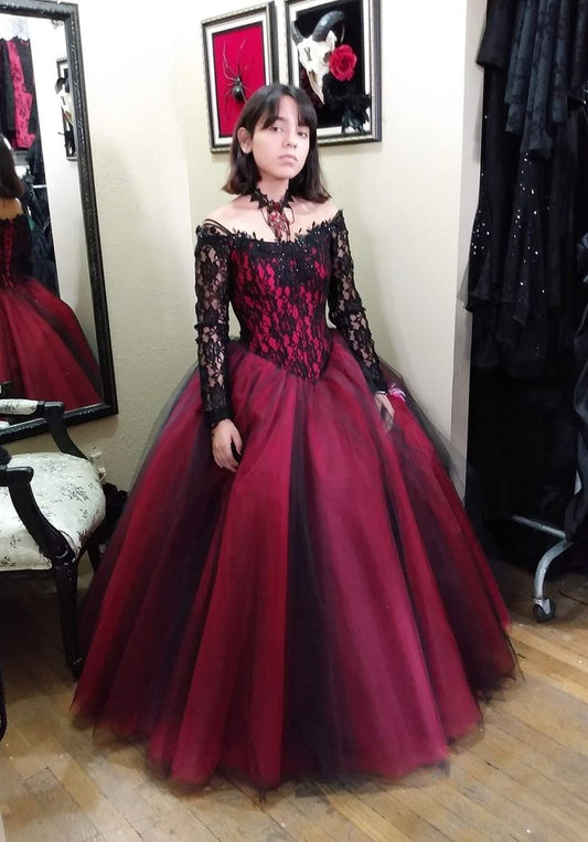 Red gorgeous vintage exquisite lace long tulle ball gown evening dress nv3373