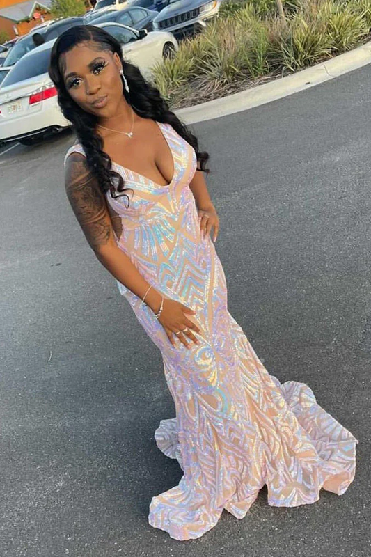 Glitter Mermaid v-Neck Sequined Long Prom Dress nv285