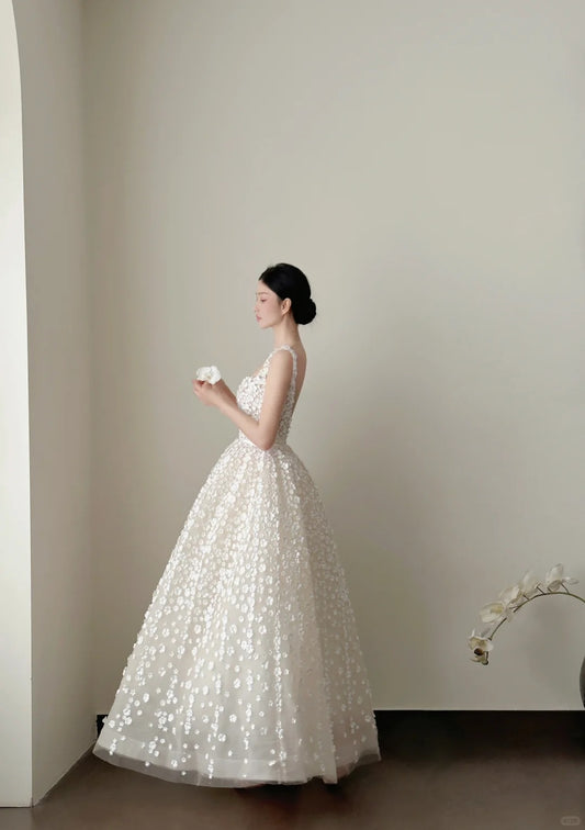 White Gorgeous Stylish Elegant Long Exquisite Floral Tulle Ball Gown Evening Gown nv4068