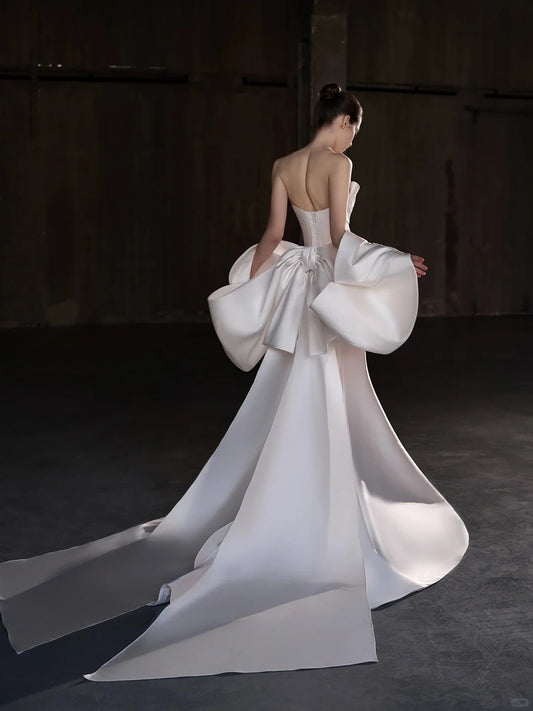 White Gorgeous Exquisite Beaded Long Satin Floor Length Mermaid Slim Ball Gown Evening Gown Wedding Dress nv4124