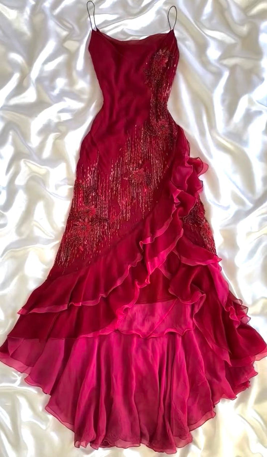 NiceVestidos--Red suspender long ruffled chiffon prom dress fairy dress NV5702