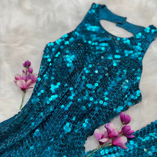 Blue fashion backless long sequin prom dress birthday party dress nv5333