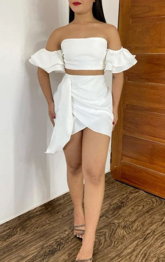 White simple fashion two piece short prom dress party dress homecoming dress nv2073