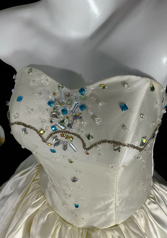 Ivory White Gorgeous Colored Rhinestone Long Satin Ball Gown Evening Dress Wedding Dress Banquet Dress nv4568