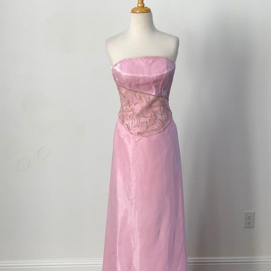 Atemberaubendes, rosafarbenes Feen-Korsett zum Binden, Blumenmuster, Perlenbesatz, langes Satin-Abendkleid, Partykleid, zweiteiliges Korsett-Ballkleid, nv3746