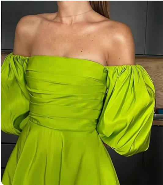 Schulterfreie Promi-Kleider, lang, A-Linie, Satin, Abendkleid, nv1644