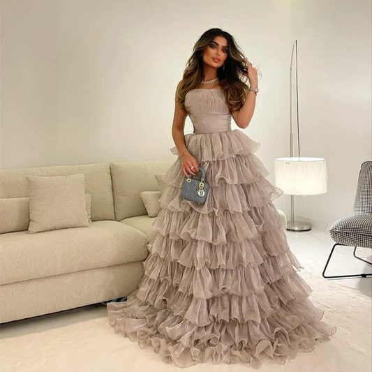 Elegantes trägerloses ärmelloses langes bodenlanges Ballkleid nv1201