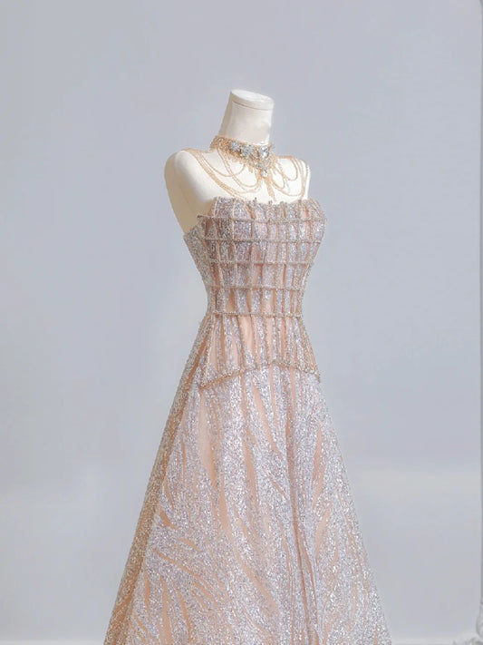 Champagner glänzend wunderschöne Palast Prinzessin lange Tüll bodenlangen Ballkleid Abendkleid Abschlusskleid nv5105