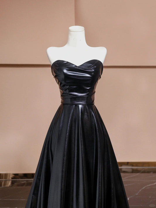 Schwarzes schlichtes, stilvolles bodenlanges Ballkleid-Abendkleid aus Satin, NV5055
