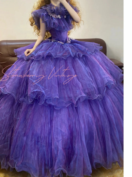 Lila Applikation Vintage elegantes langes Prinzessin Tüll Ballkleid nv5030