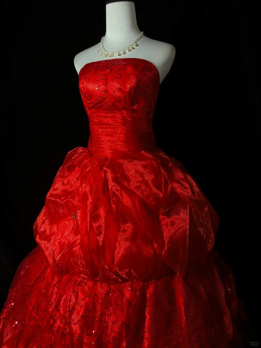Wunderschönes burgunderrotes langes Vintage-Ballkleid aus Samt, nv4814