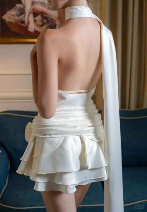 Weißes Perlen-Kurzkleid, modisch, elegant, für die Heimkehr, Geburtstagsparty, Ballkleid, NV4772