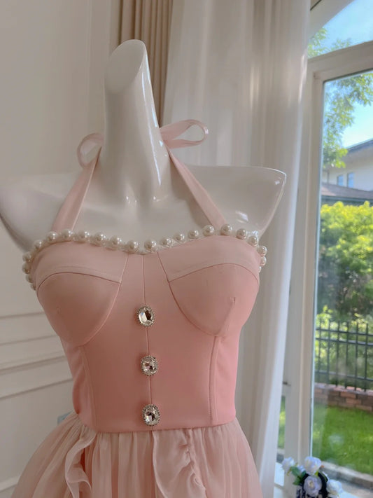 Rosa Homecoming-Kleid Spaghettiträger Kurzes Partykleid nv4224