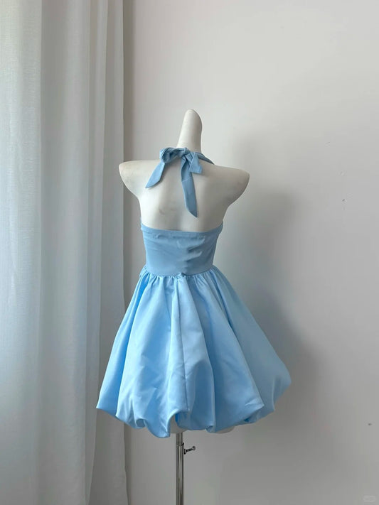 NiceVestidos – Kurzes blaues Satin-Heimkehrkleid Nv5609