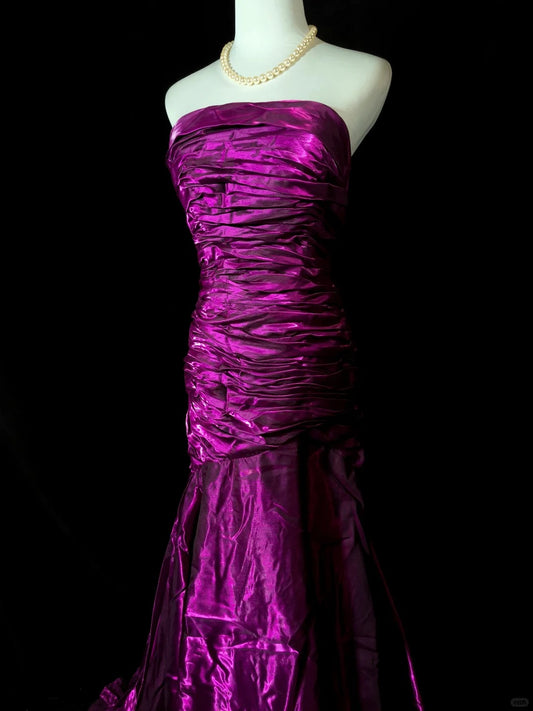 Lila Elegantes Langes Satin Ballkleid Abendkleid nv4783