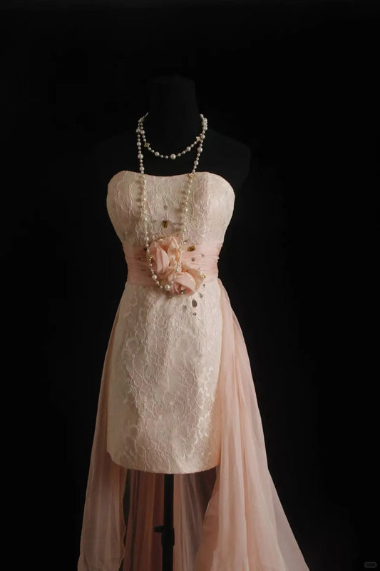 Rosa Spitzen-Tube-Top, vorne kurz, hinten lang, Ballkleid, Abendkleid, Homecoming-Kleid, Geburtstagskleid, NV4789