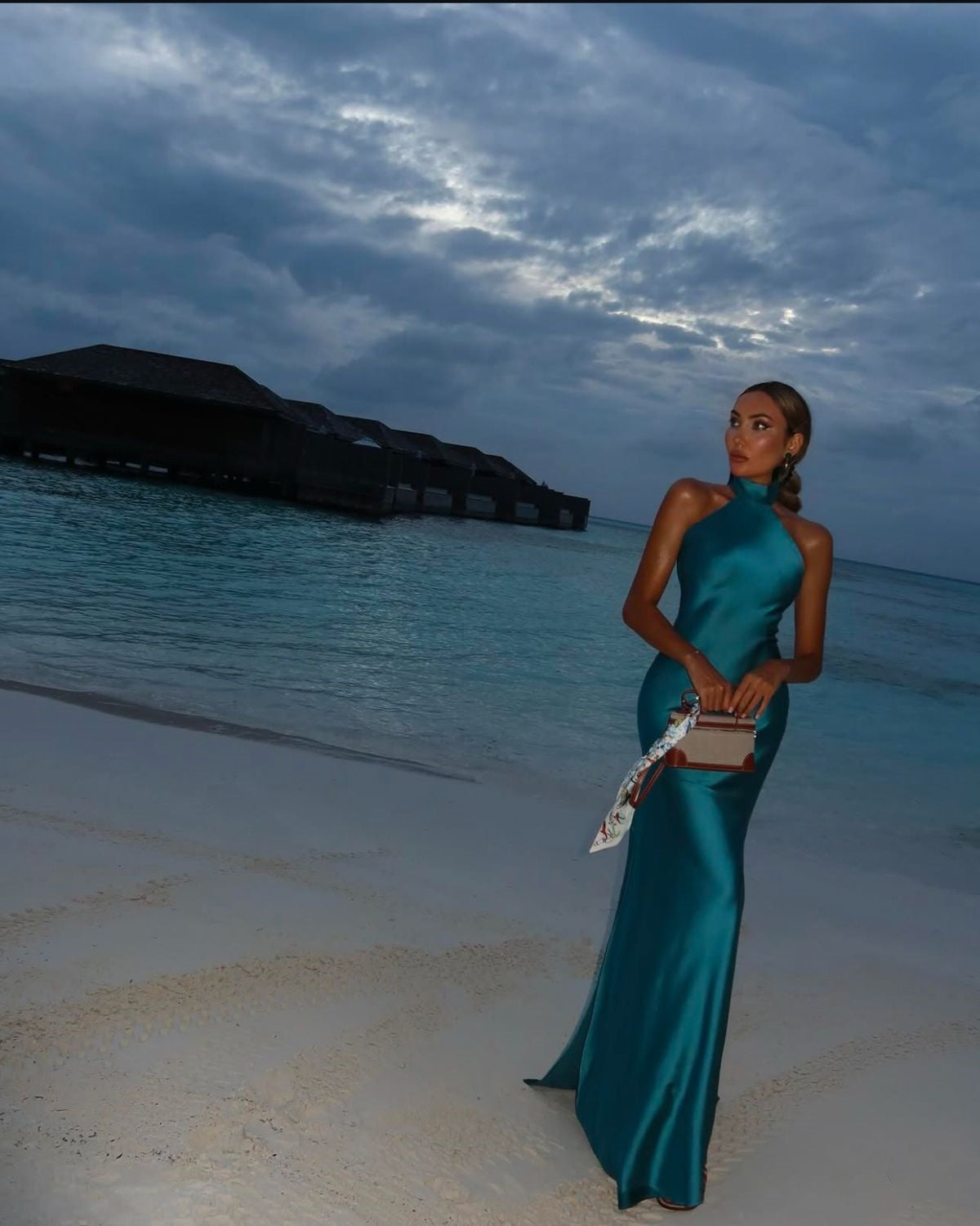 Blaues, modisches Neckholder-Lang-Satin-Meerjungfrauenkleid, schlankes Ballkleid, Abendkleid für Hochzeitsgäste, Partykleid nv4801