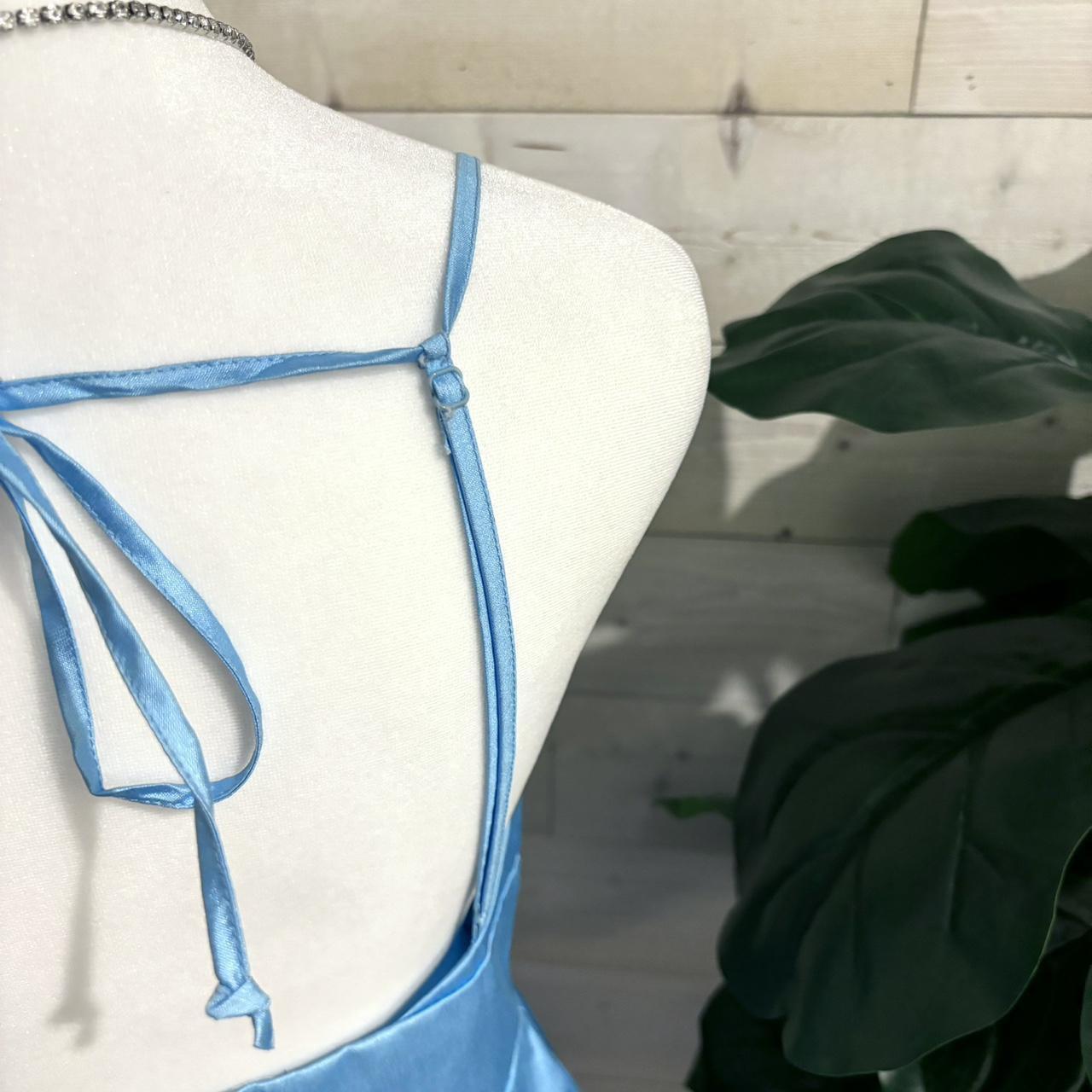 Atemberaubendes Cinderella-Ballkleid mit V-Ausschnitt und langem Satin in Blau mit Farbverlauf, Abendkleid, Partykleid, NV4254