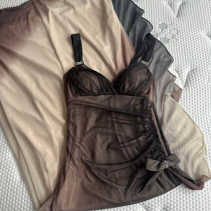 Braun und Creme modischer Farbverlauf wunderschönes einzigartiges Glitzer-Maxikleid Vintage elegantes langes Chiffon-Tüll-Ballkleid Abendkleid Partykleid Ballkleid NV4249