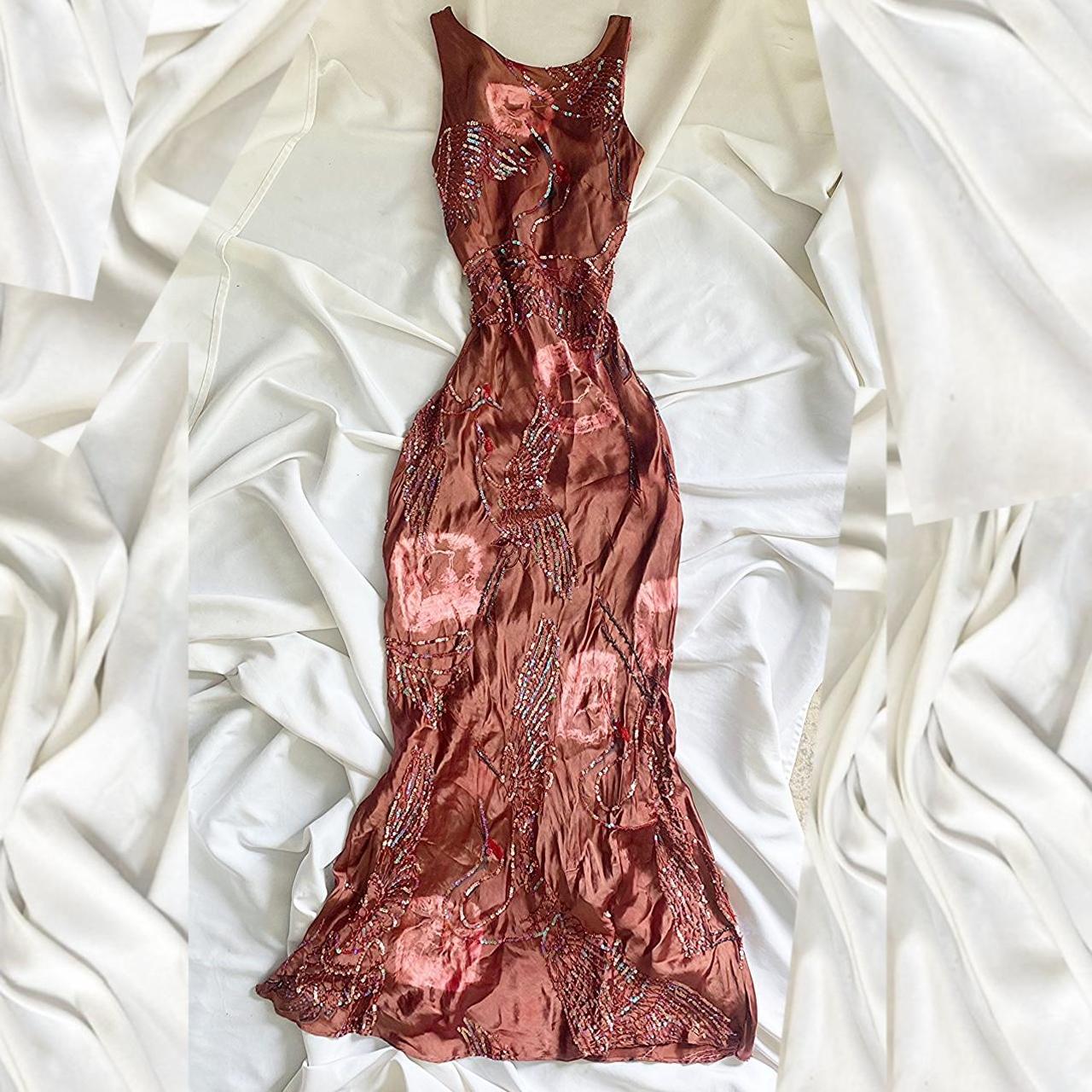 Braunes Perlenkleid, elegantes langes Satin, Geburtstagskleid, Ballkleid, Partykleid, Heimkehrkleid, nv4530