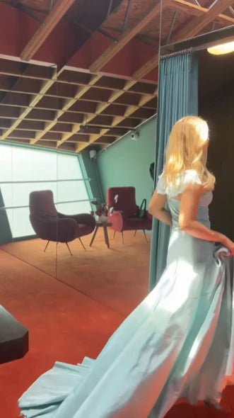 Elegantes Meerjungfrau-Abendkleid im himmelblauen Satin mit schulterfreiem Ausschnitt, Ballkleid nv4152