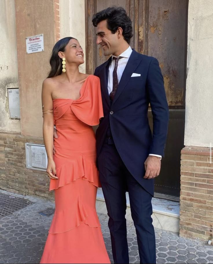 Elegantes, korallen-orangefarbenes, einschultriges, gerüschtes, langes Ballkleid, Abendkleid für Hochzeitsgäste mit gerüschtem Saum, NV2648