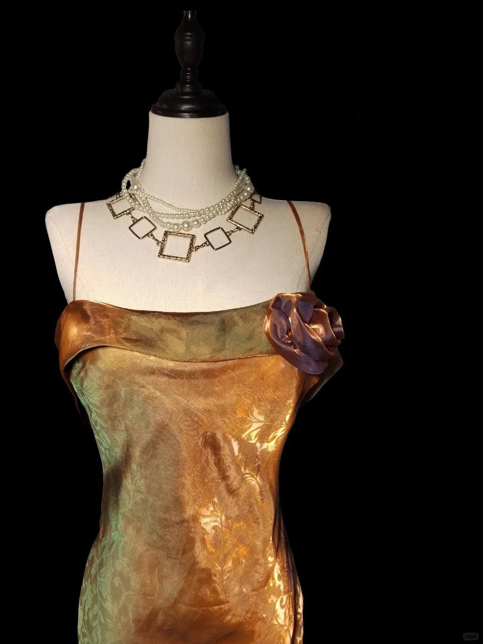Goldgrünes, wunderschönes, modisches, elegantes, dunkles Muster, lange Spaghettiträger aus Satin mit Meerjungfrauenschwanz, Ballkleid, Abendkleid, Geburtstagspartykleid, Ballkleid, NV3968