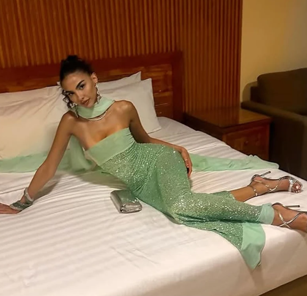 Grün/Silber/Burgund Tube Top elegantes sexy Paillettenkleid Damen Ballkleid Abendkleid Partykleid nv5257