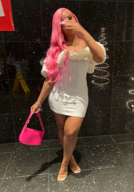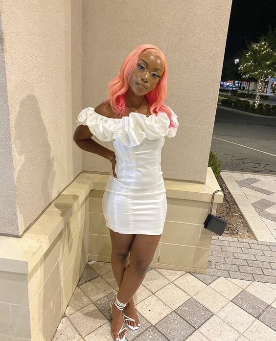 Elfenbeinfarbenes schulterfreies Rüschen-Geburtstagskleid, Cocktailkleid, Homecoming-Kleid, nv2118