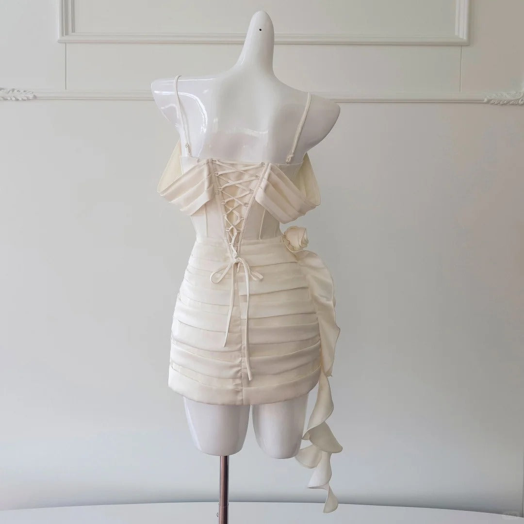 Elfenbeinweißes kurzes Satin-Heimkehrkleid, Ballkleid, Geburtstagspartykleid, nv4668