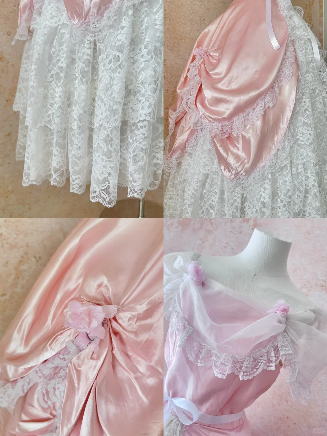 Rosa Retro Elegante Süße Exquisite Spitze Kuchen Prinzessin Kleid Lange Erwachsene Zeremonie Kleid Geburtstag Kleid Ballkleid Abendkleid nv4094