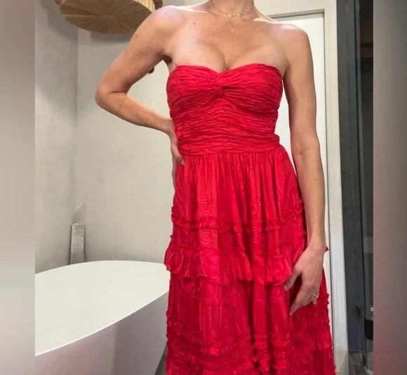 Rot Mode Elegant A-linie Lange Chiffon Ballkleid Abendkleid Hochzeit Gast Kleid nv3432