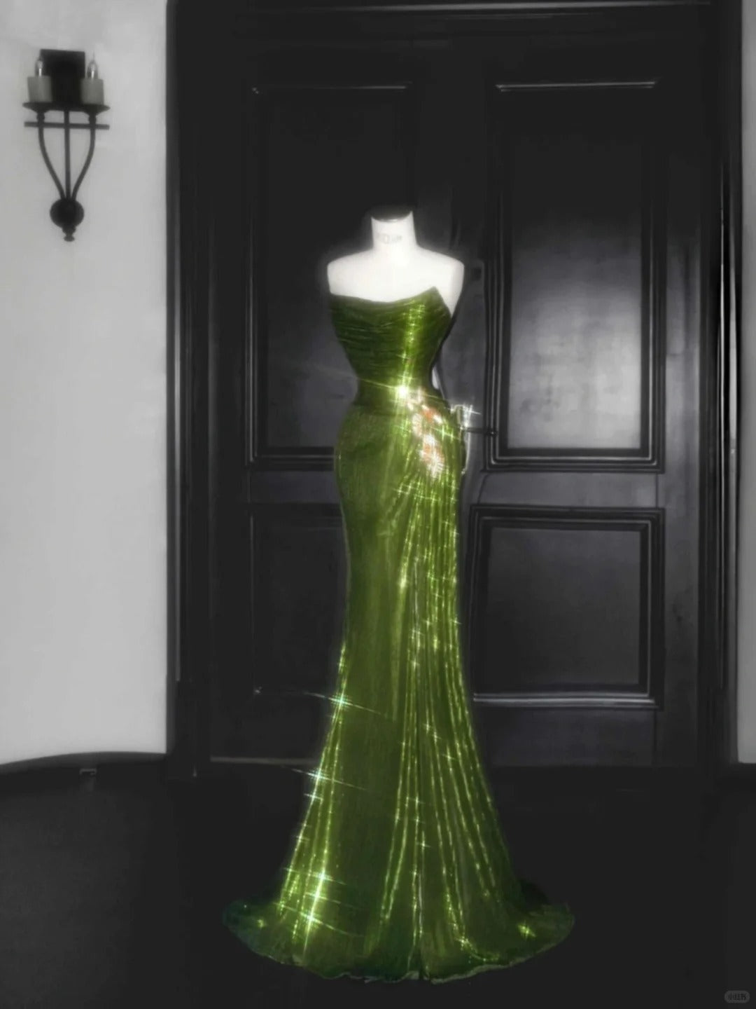 Der Zauberer von Oz 🍃 Bezauberndes, atemberaubendes Kleid mit grün schimmernden und wunderschönen Pailletten, langes und bodenlanges Ballkleid nv5203