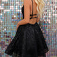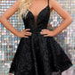 Schwarze Ballkleider aus Spitze mit V-Ausschnitt, schwarze Homecoming-Kleider aus Spitze, kurze schwarze formelle Abendkleider für den Abschluss nv1485