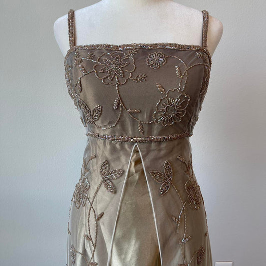 Champagne color beautiful fashion elegant exquisite sequin long chiffon sexy slit ball gown evening dress birthday party dress nv3731