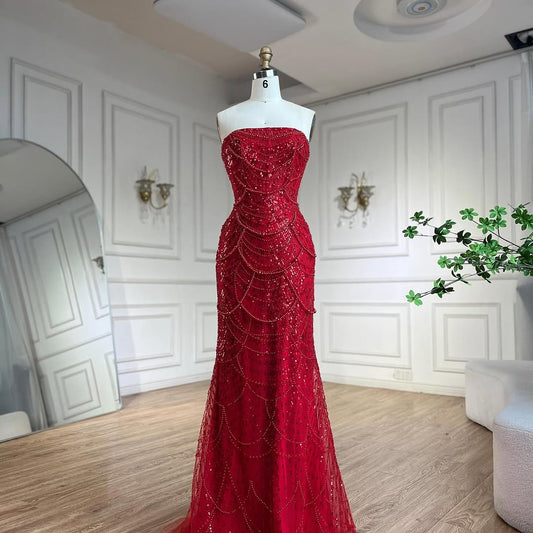 Red gorgeous exquisite beaded long tulle floor-length elegant ball gown evening dress nv3392