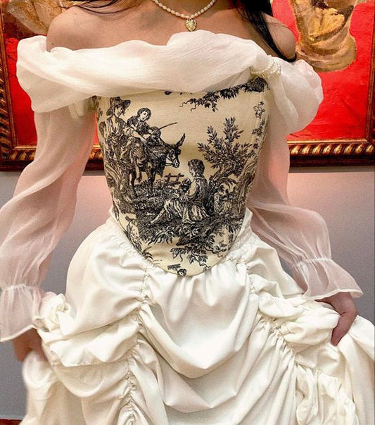 Gothic Black and White Off Shoulder Ruffled Corset A-Line Long Prom Gown Evening Dress Party Dress nv2606