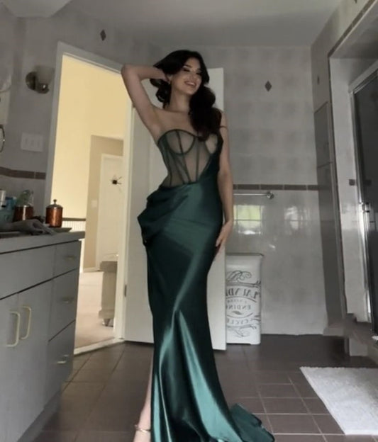 Green fashion sexy see-through slim long bustier dress evening dress wedding guest dress prom dress party dress nv2616
