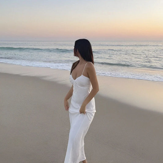 Women's Elegant High Slit Midi Dress Sexy Spaghetti Strap Party Dress Backless nv1662
