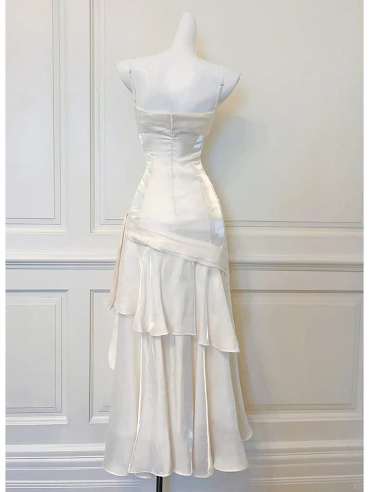Homecoming dress white retro simple fashion mid-length satin prom dress nv5424