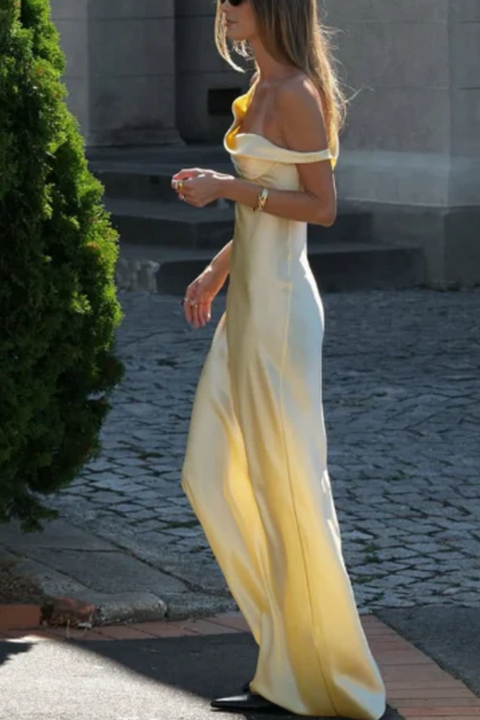 Yellow satin long fashion elegant prom dress party dress nv5390