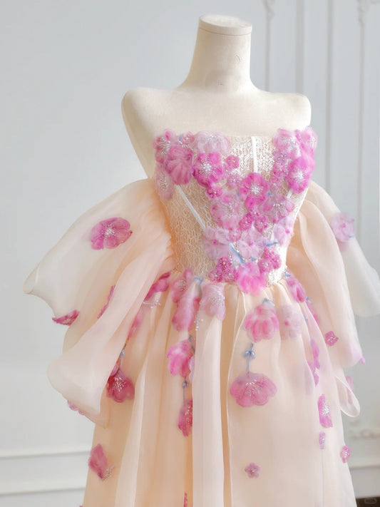Blue Floral Long Tulle Vintage Ball Gown nv5040