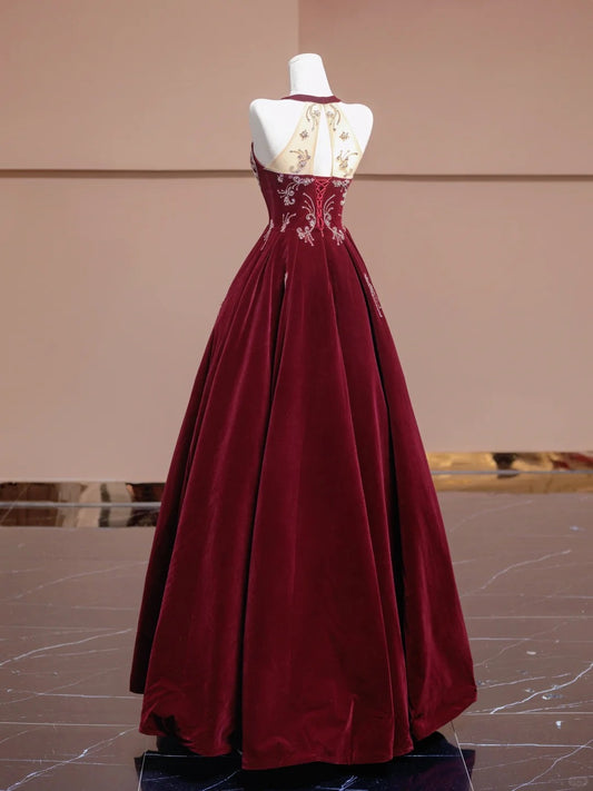 Red beaded long velvet floor-length ball gown evening dress nv5051