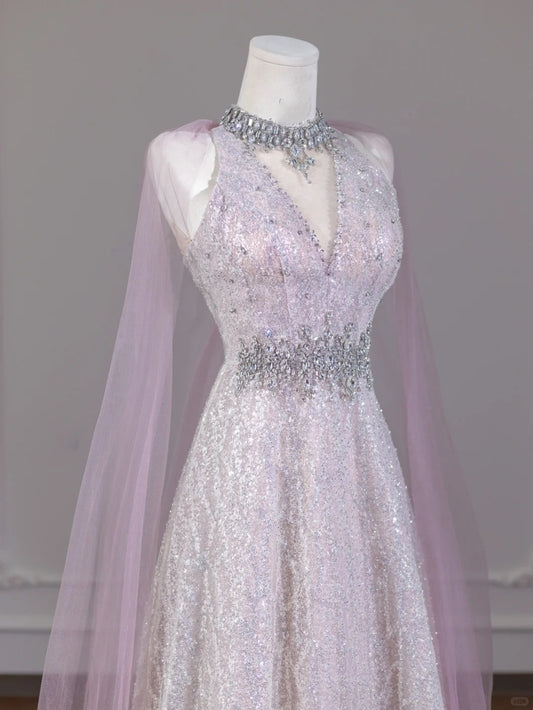 Purple Sparkling Beaded Long Floor-Length Prom Dress nv4967